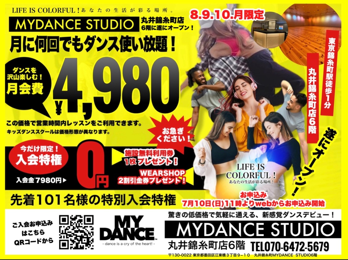 8月1日(月)ついにMYDANCE STUDIO & MYDANCE WEAR STOREで丸井錦糸町店内6階にオープン!