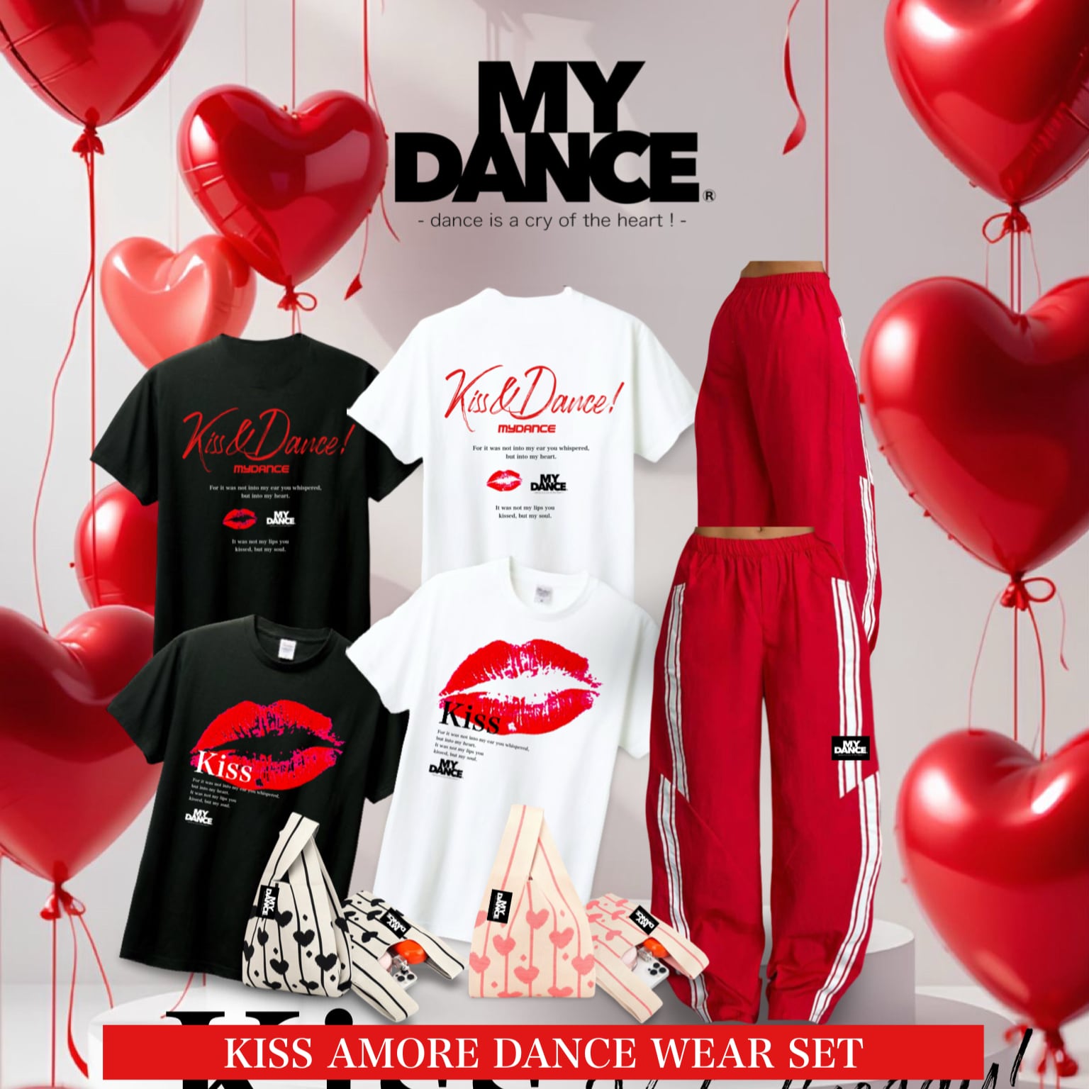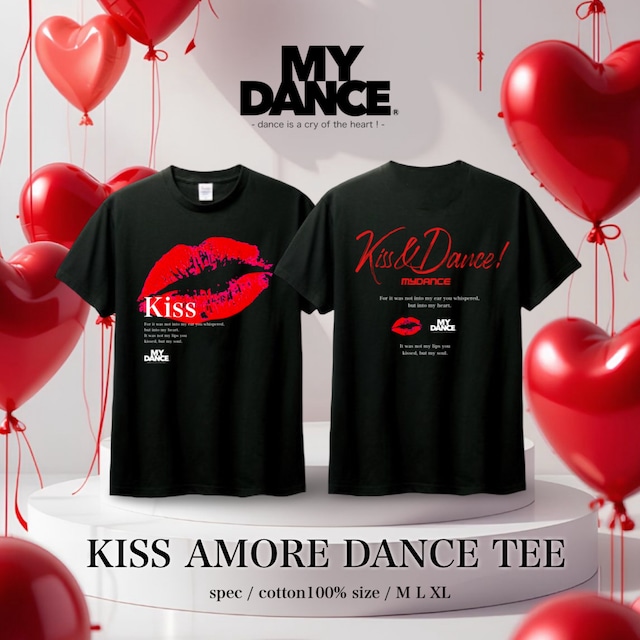 バレンタインデーにぴったりな特別なDANCE TEEが登場しました!キュートなkissマークが施されたデザインは、見る人の心をつかむこと間違いなしです。ダンスやお出かけのシーンに最適で、あなたの個性を一層引き立てます。